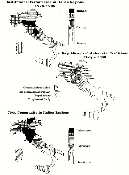 7 The third map, “Civic Community in Italian Regions,” is map figure 5.1, p. 134. Copyright © 1993 by Princeton University Press. Reproduced by permission of Princeton University Press.