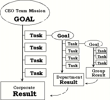 To reach these positive corporate results, the company creates value through its work. Most permanent organizations segment the work literally, setting up divisions and departments (both derive from the same root word meaning divide). Each has its own mission—for example, marketing, research and development, engineering, production, sales, and distribution departments (functions) or divisions based on factors such as products, geographies, or industries. To make its contribution to the joint work effort, a large organizational component like marketing may further subdivide its piece. Internally, it creates its own departments and groups, each of which has separate charters (written or “just understood”) based on the work assigned from above. This sequence replicates down and throughout the organization, with each group doing its own work and expected outcomes.